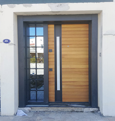 2. Estetik Tasarım: Farklı tasarım seçenekleri ile villanın dış cephesine uyum sağlayacak şekilde estetik açıdan şık kapılar sunulur. Ahşap görünümleri, modern çizgiler ve dekoratif unsurlar kullanılarak estetik değerleri yüksek kapılar tasarlanabilir.